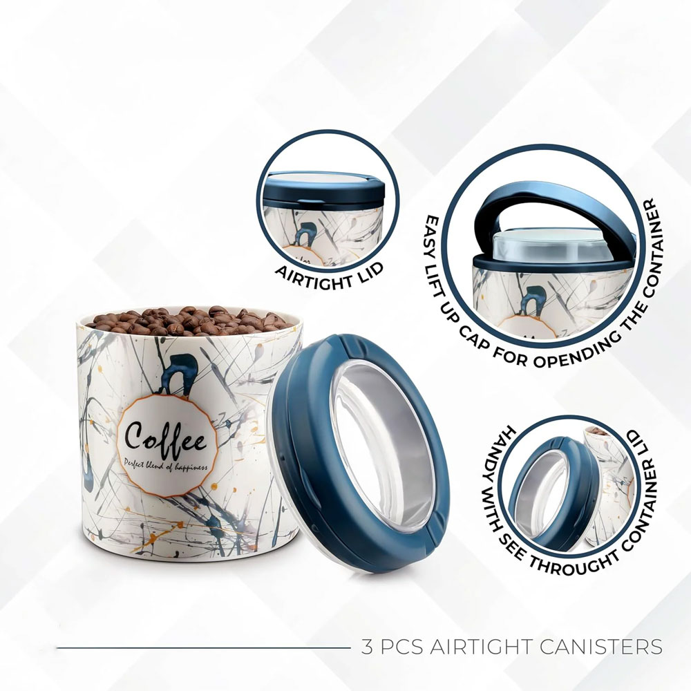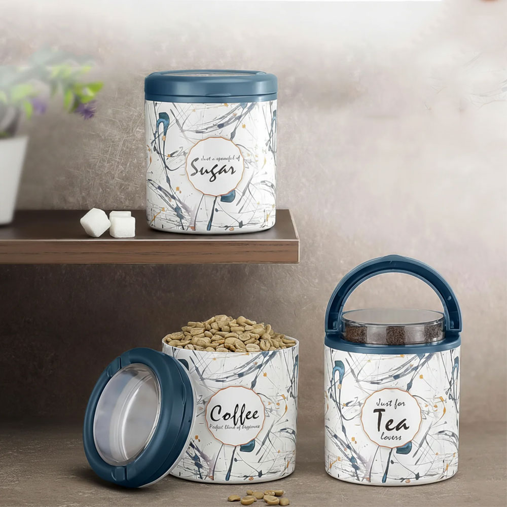 - Designed for tea, coffee, and sugar storage