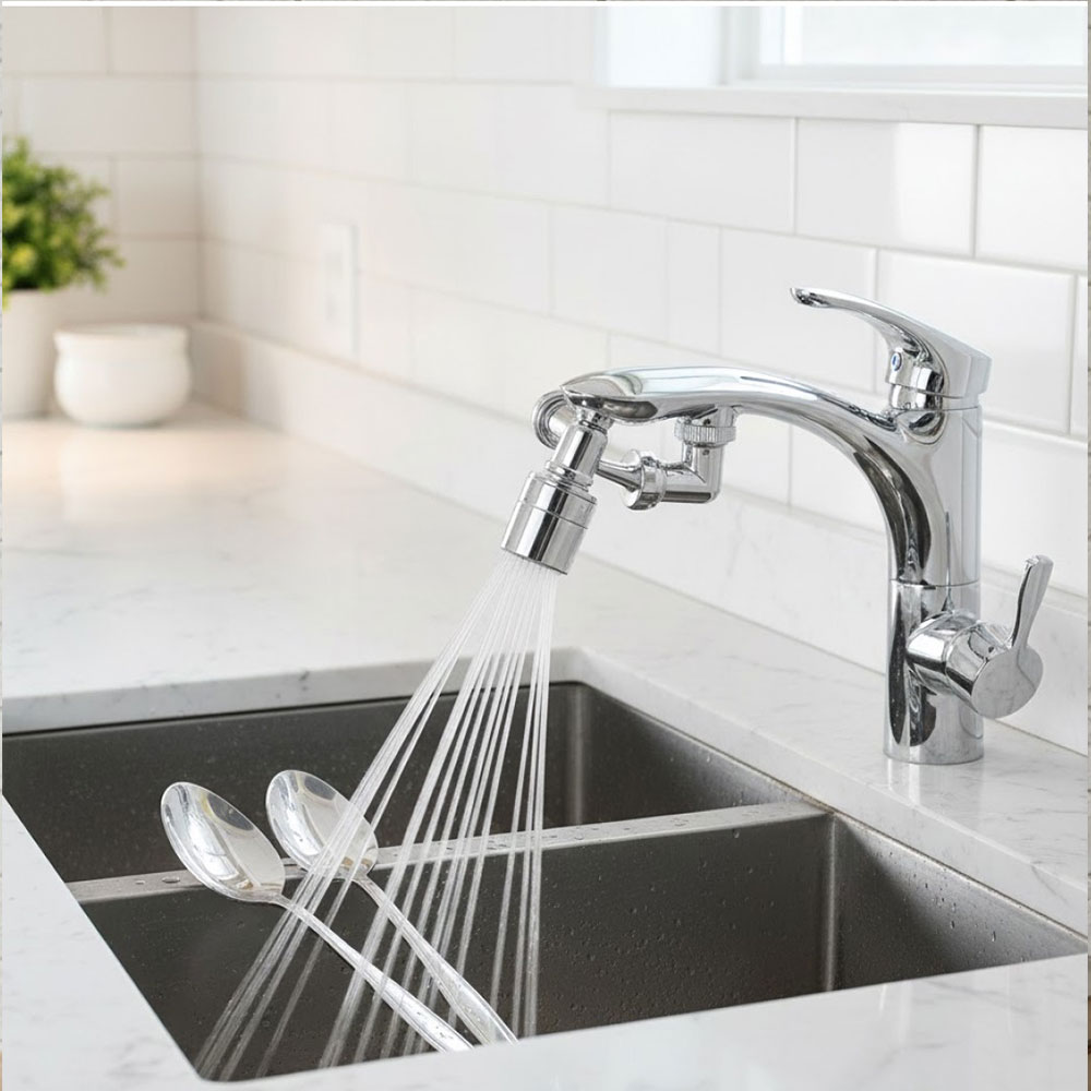 - This tap can be rotated 1080 degrees and can be bent or folded at will, allowing water to reach every corner of the sink.