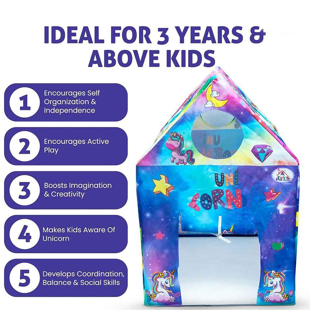 Unicorn Theme Foldable Kids Play Tent House with Colorful Fantasy Print for Indoor & Outdoor Play